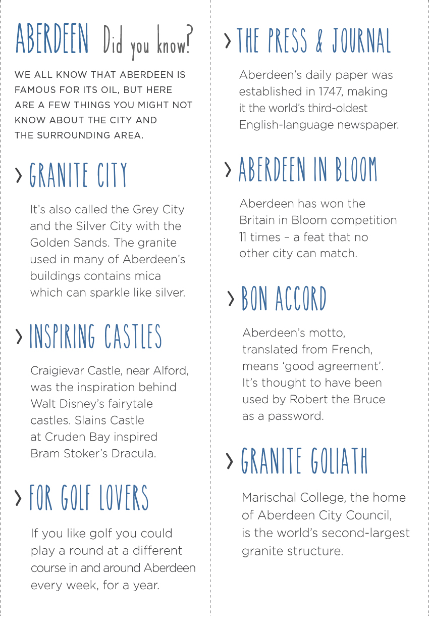 Aberdeen is a vibrant, historic city with a modern twist. Close to Scotland’s largest national park, it has a dramatic coastline, striking granite architecture and excellent road, rail and air links.