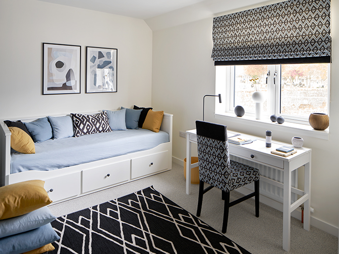 The fourth bedroom is a generously proportioned room, ideal for a home-working area, with a sofabed for guests. Each room has been designed to flow seamlessly from one area into another, whilst keeping the identity and purpose of each space clear.