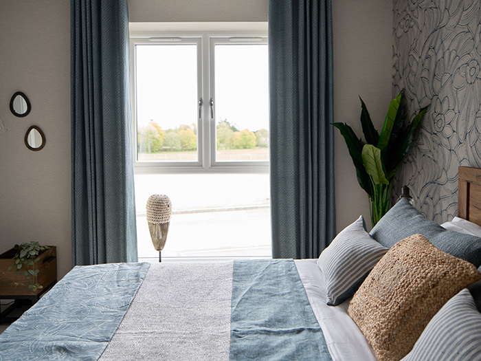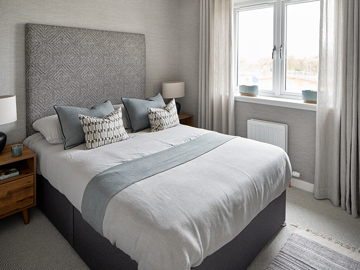 Upstairs, there are 4 spacious bedrooms. Interior design specialists Ambiance were keen to explore textural fabrics in these rooms — giving you some fresh inspiration for your own decorating choices.